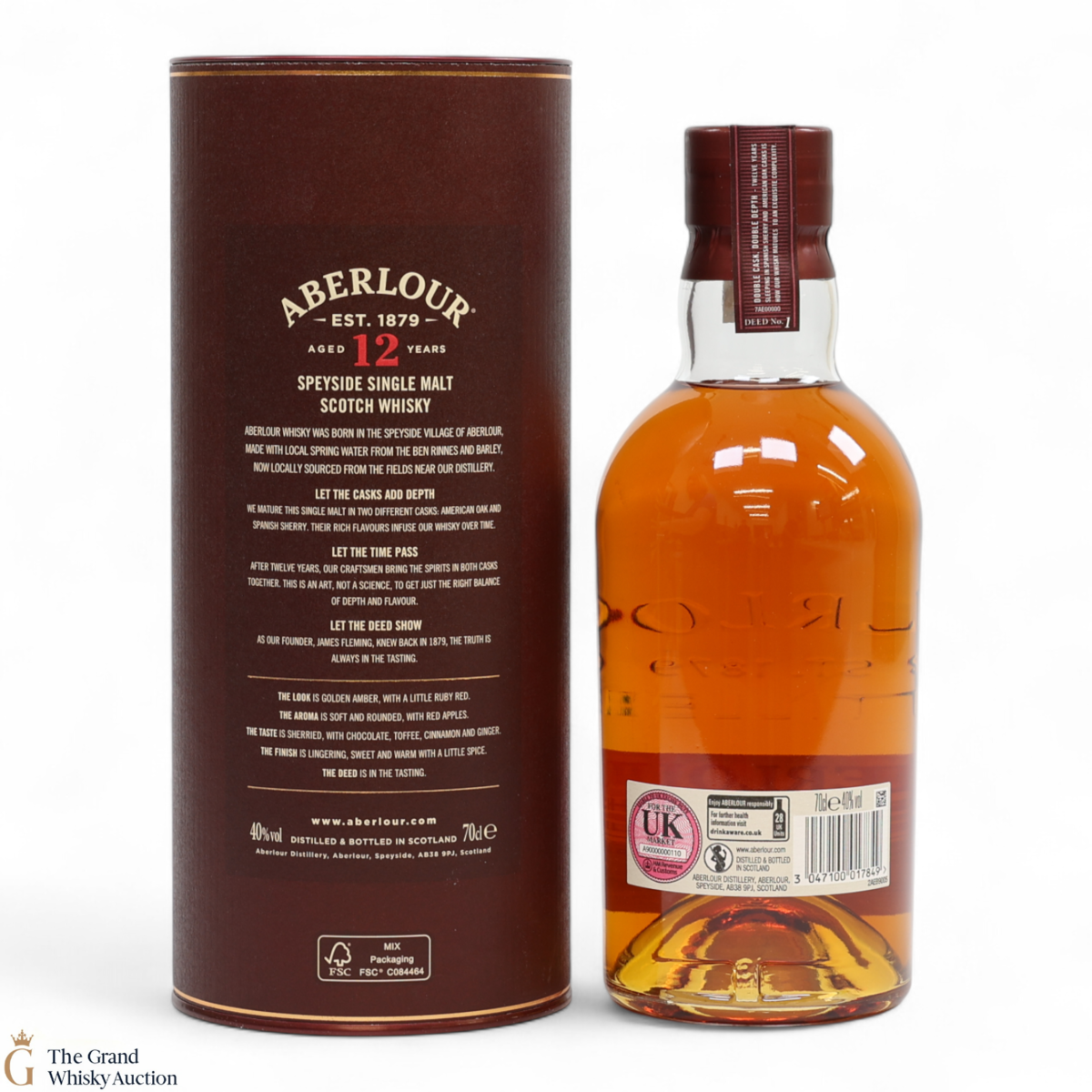 This Aberlour 12 Year Old, has been double cask matured in two handmade oak cask types. The double maturation of both traditional oak and sherry casks adds depth of character to this single malt, now bottled at 40% abv.