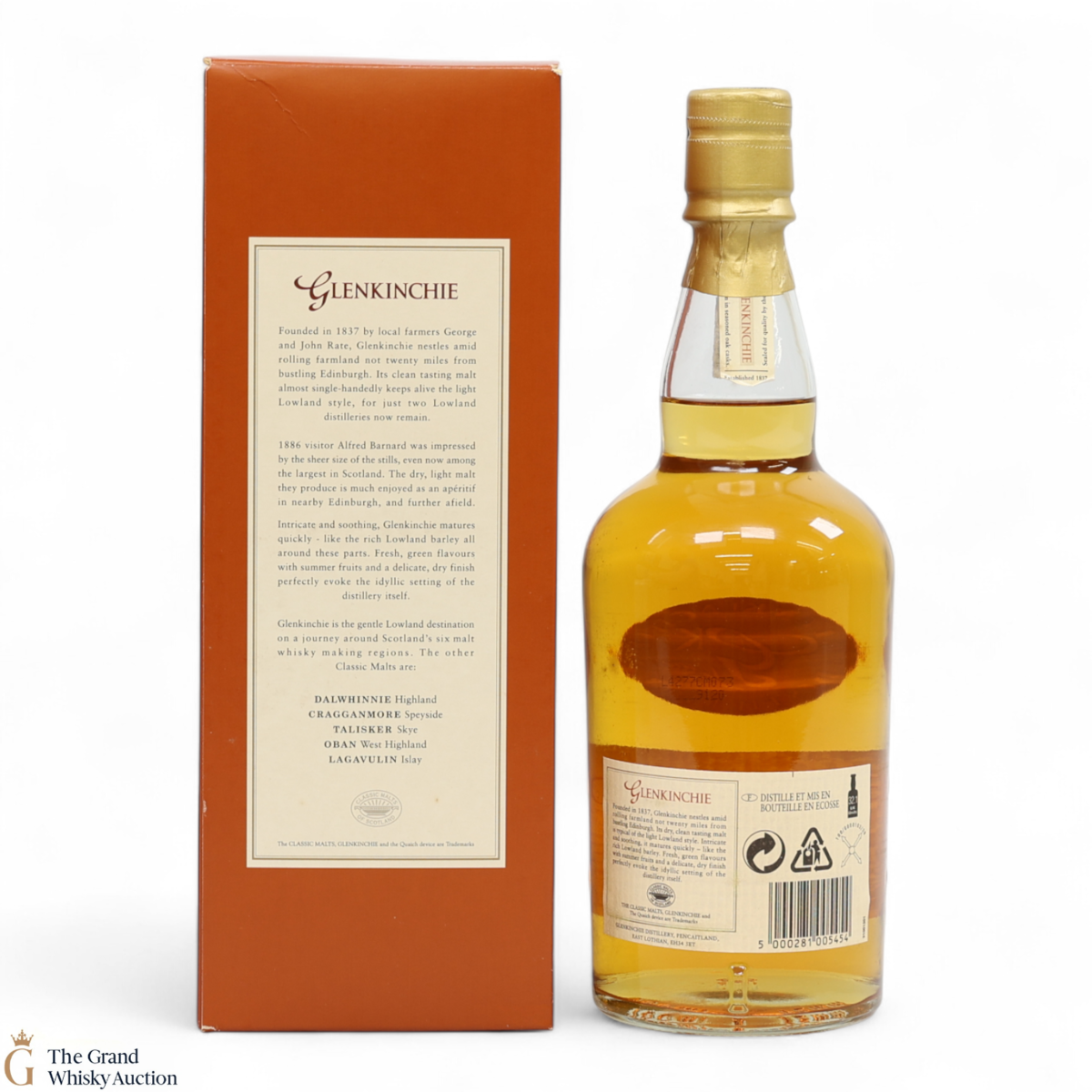 This 10-year-old is an older style bottling from Glenkinchie Distillery, that comes presented in the famous orange box - with the classic malt stamp on the front of the box. The Glenkinchie 10-year-old has since been replaced by the 12-year-old.