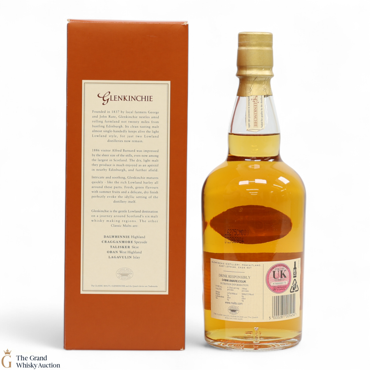 This 10-year-old is an older style bottling from Glenkinchie Distillery, that comes presented in the famous orange box - with the classic malt stamp on the front of the box. The Glenkinchie 10-year-old has since been replaced by the 12-year-old.