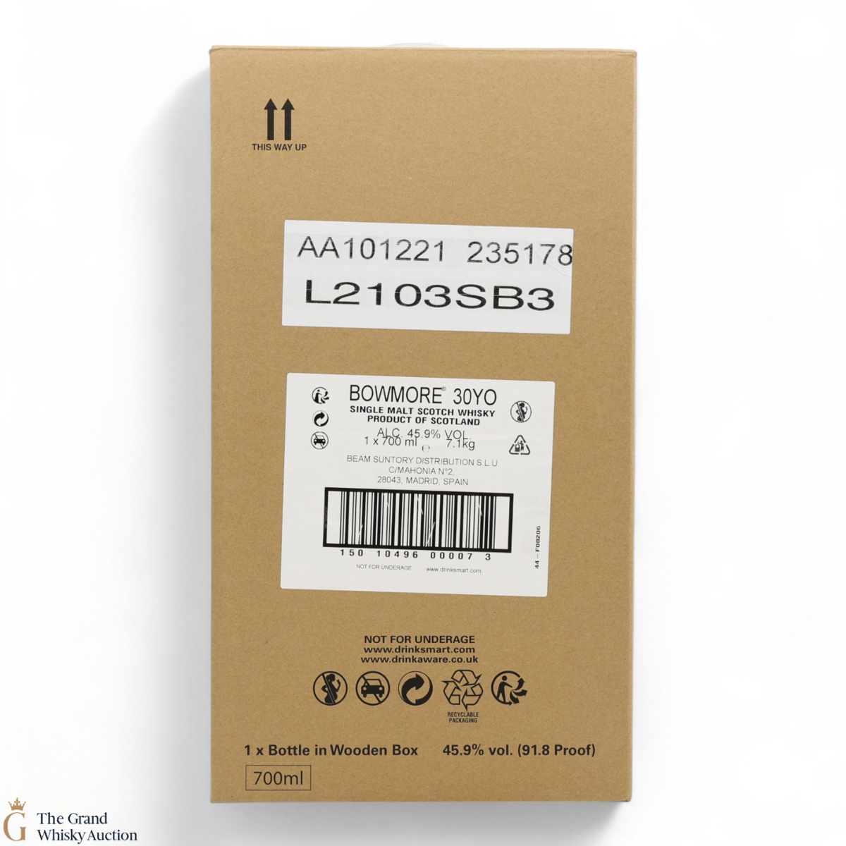 Due to the various ages of bottles and their seals, the condition of liquid is at the buyer's discretion and no claim can be lodged against failure/leakage in transit. Loss and breakage cover is available at 3% of the hammer price as standard. If the lot is not insured, no claim can be lodged against the courier or The Grand Whisky Auction for breakage or loss in transit.
