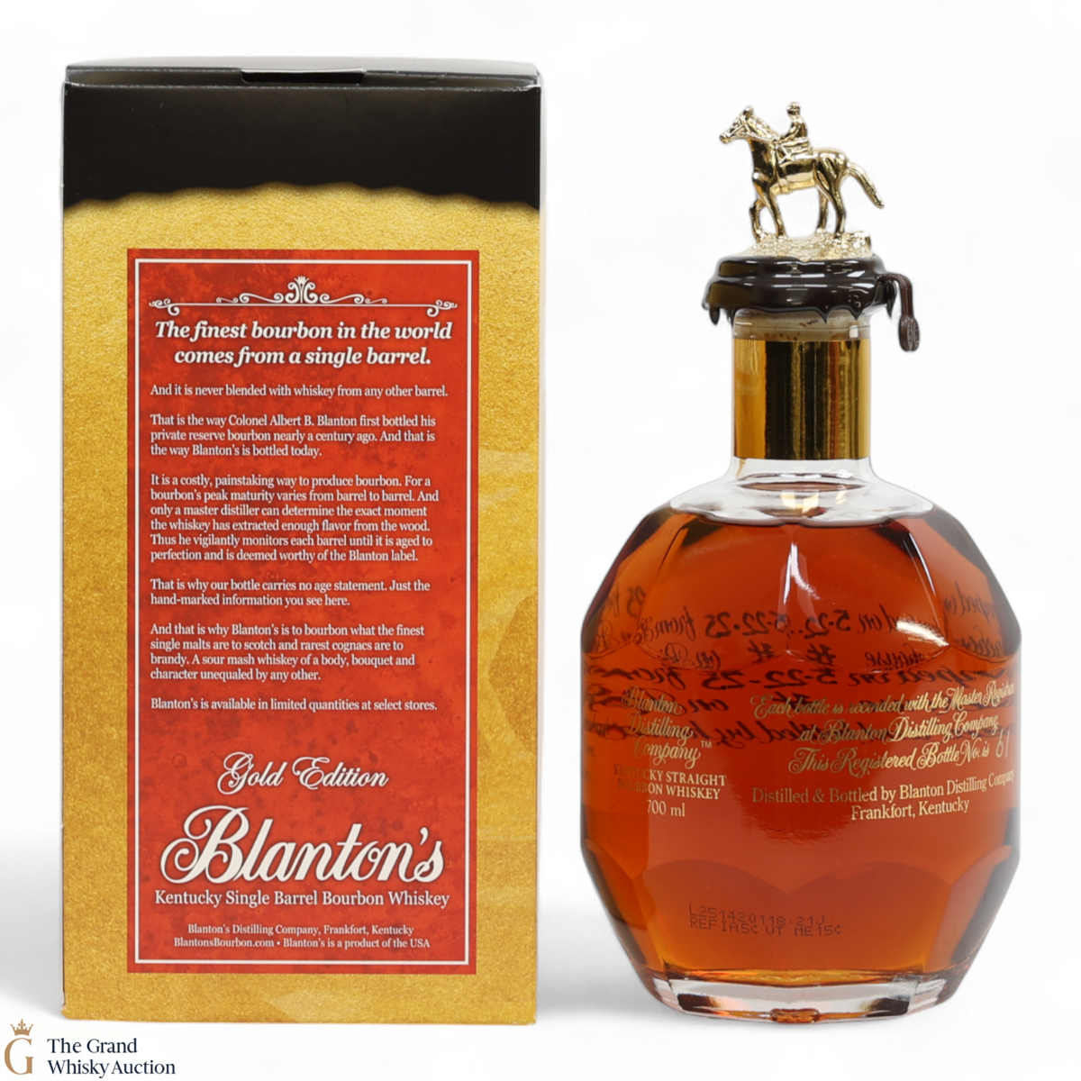 PLEASE NOTE: The wax seal on Blanton's bottles are prone to cracking in transit due to their design. Therefore, as stated in our T&C’s, we do not and will not accept liability should the seal be breached, broken, split or leak in transit. Additionally, please know due to the design of the internal cardboard packaging that surrounds the top of the bottles, it too may be torn. By bidding on this lot you have understood this to be true. Insurance is for complete breakage or loss in transit only.