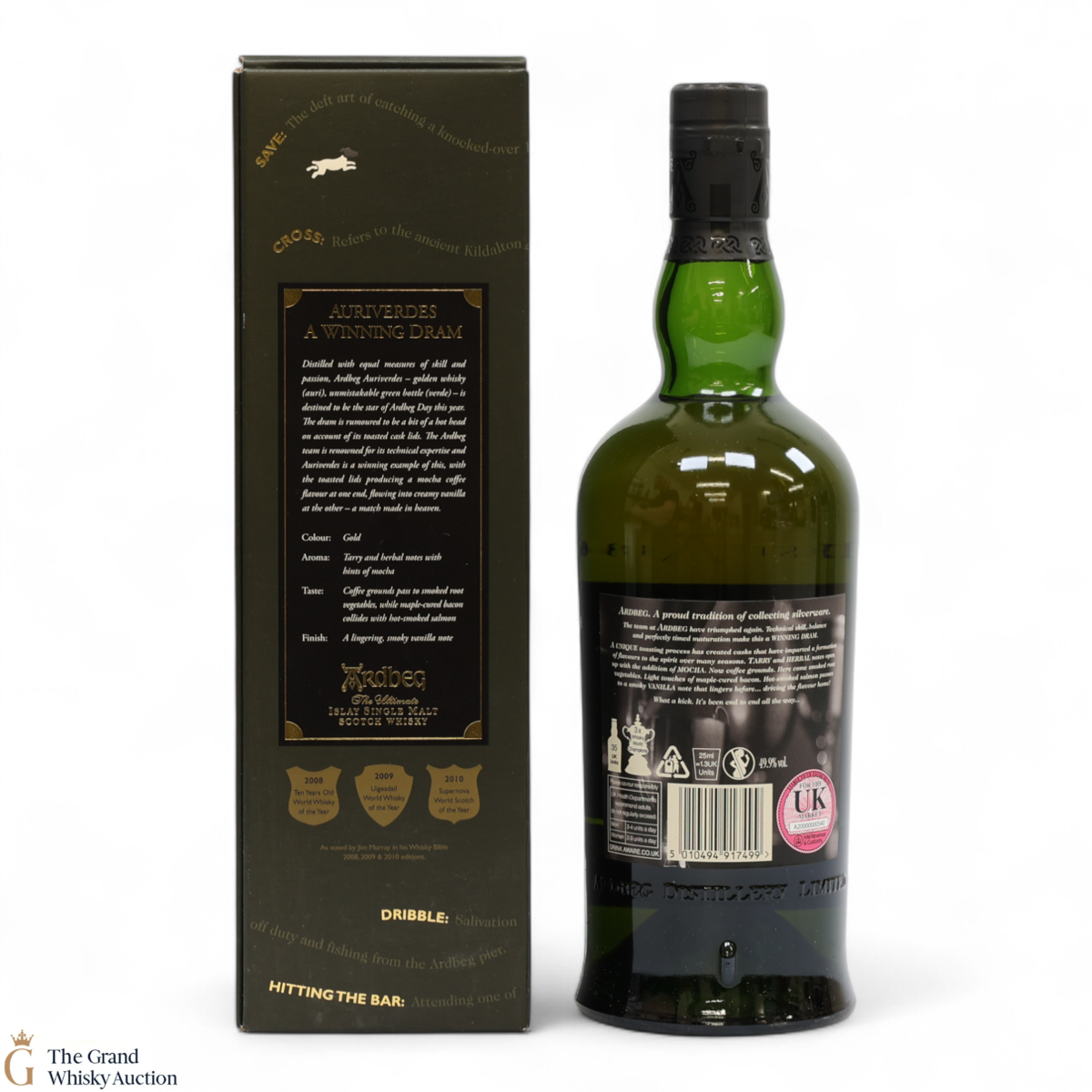 This special edition Ardbeg single malt was released on Ardbeg Day 2014 during Feis Ile. Auri(Gold) Verdes (Green) it refers to the golden whisky and the iconic Ardbeg green bottle of Ardbeg whisky. It is said to be a dram of two halves - the whisky uses toasted cask lids to create Mocha Coffee flavours that team up with creamy vanilla.