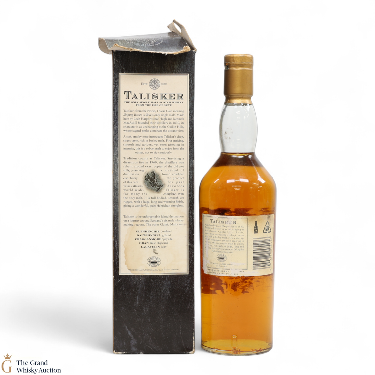Due to the various ages of bottles and their seals, the condition of liquid is at the buyer's discretion and no claim can be lodged against failure/leakage in transit. Loss and breakage cover is available at 3% of the hammer price as standard. If the lot is not insured, no claim can be lodged against the courier or The Grand Whisky Auction for breakage or loss in transit.