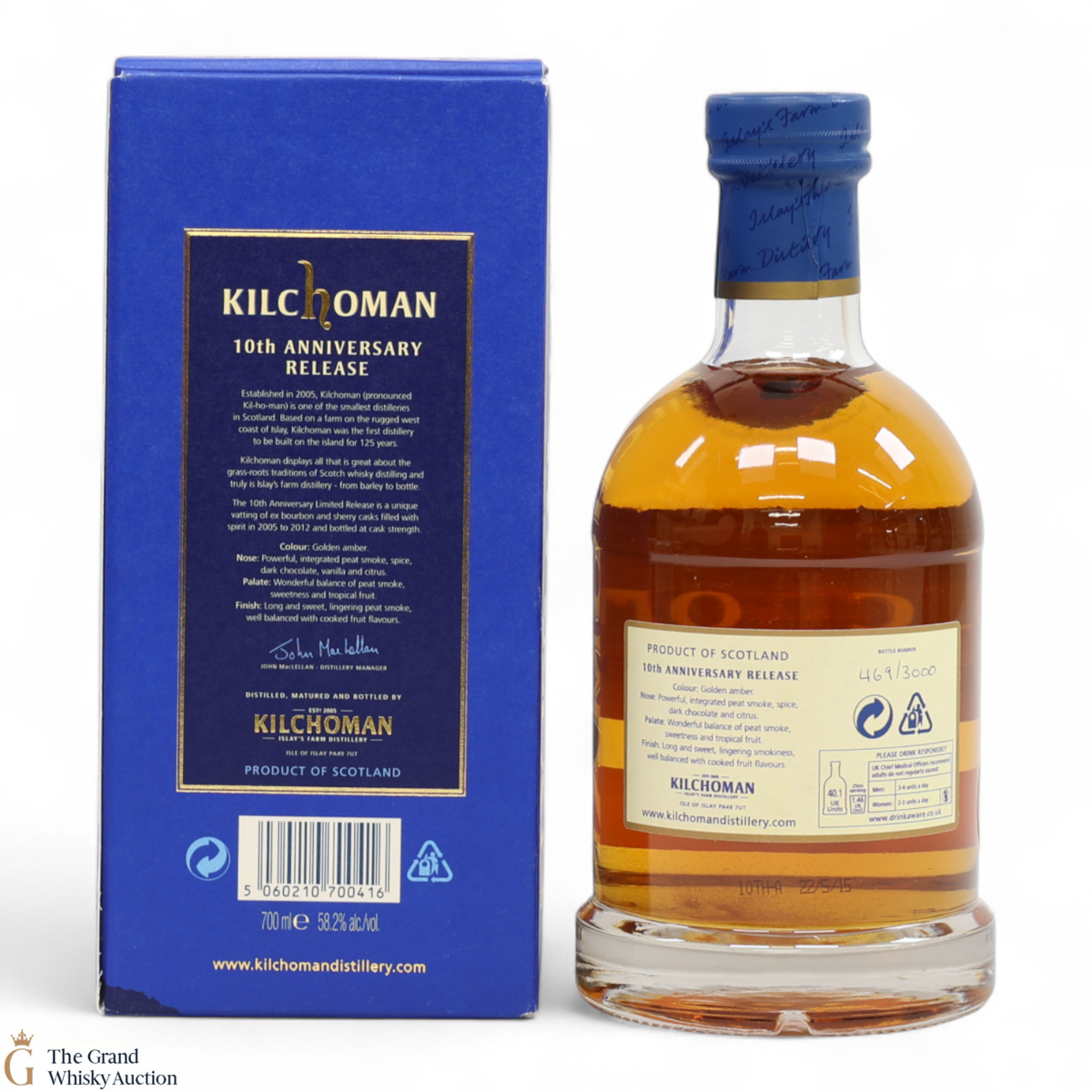 This limited edition of just 3000 bottles was released in 2015 by Kilchoman Distillery to celebrate their 10th anniversary of opening. This special bottling is made up of both Sherry and bourbon Kilchoman cask matured whiskies with vintages varying from 2005 to 2012. Excitingly, whisky from the first cask ever filled (01/2005) is used for this celebratory release.