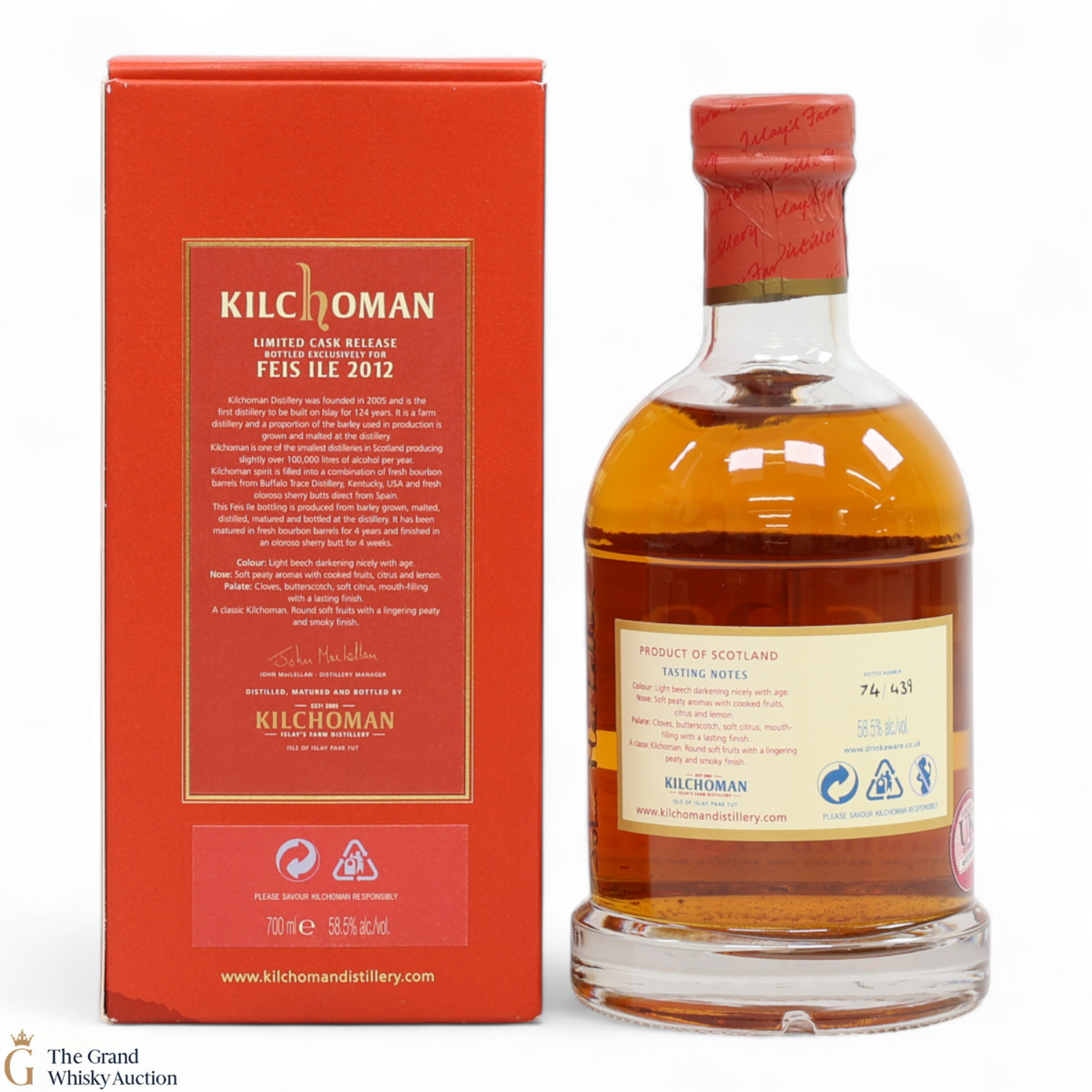 This was the Kilchoman Fèis Ìle 2012 release, which was sold exclusively at Kilchoman Distillery. It is a cask-strength sherry-finished single malt. This is one of only 439 bottles produced.