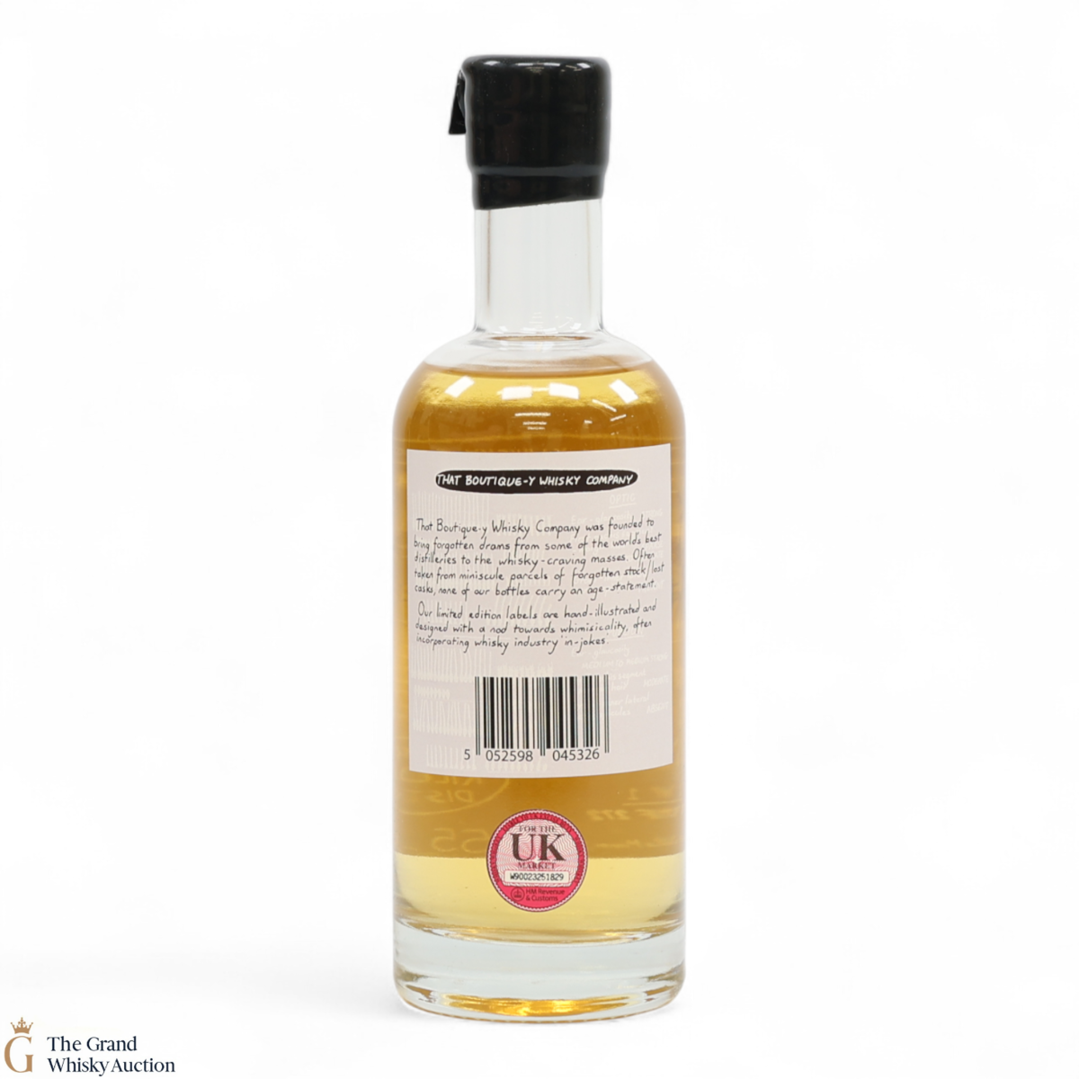 Due to the various ages of bottles and their seals, the condition of liquid is at the buyer's discretion and no claim can be lodged against failure/leakage in transit. Loss and breakage cover is available at 3% of the hammer price as standard. If the lot is not insured, no claim can be lodged against the courier or The Grand Whisky Auction for breakage or loss in transit.