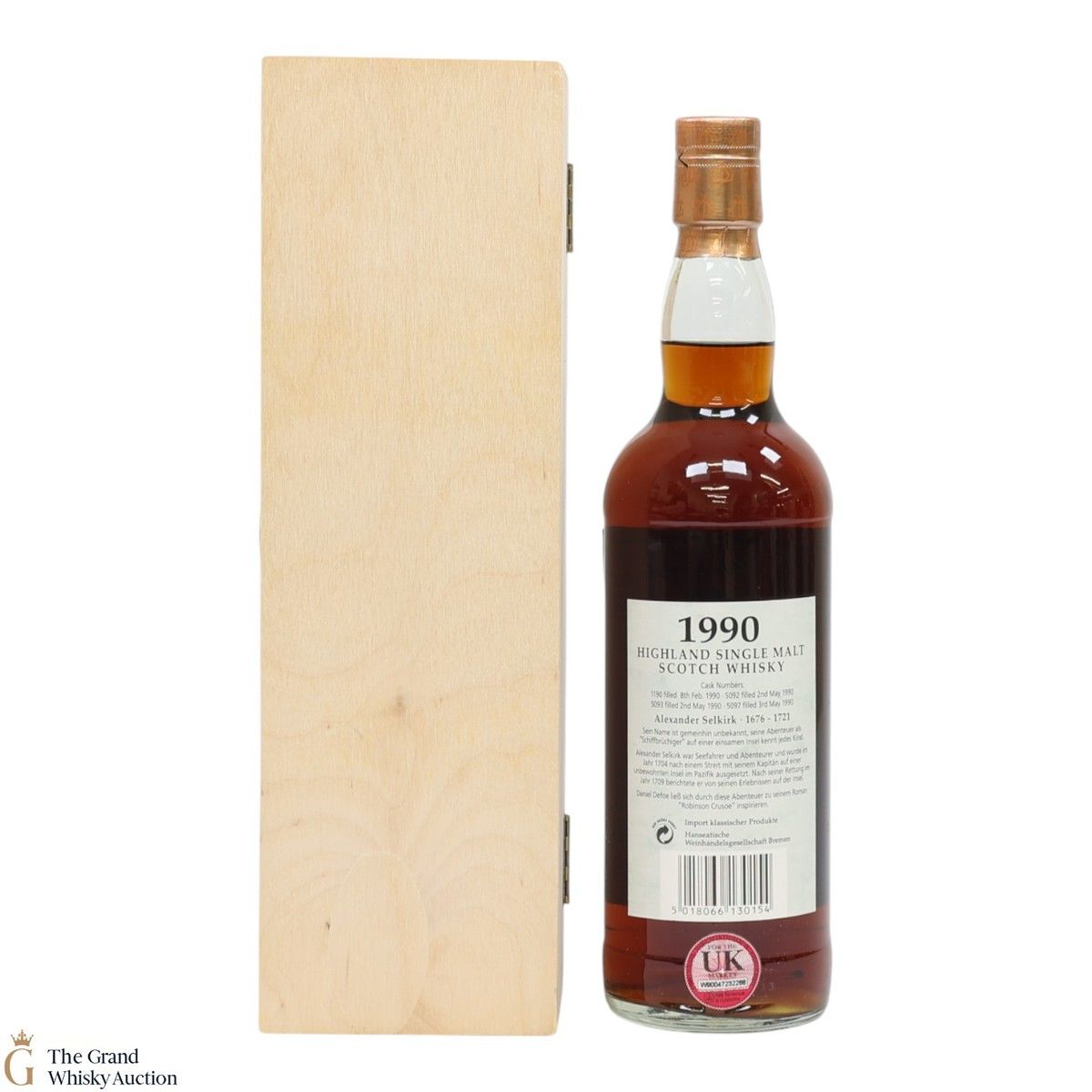 Due to the various ages of bottles and their seals, the condition of liquid is at the buyer's discretion and no claim can be lodged against failure/leakage in transit. Loss and breakage cover is available at 3% of the hammer price as standard. If the lot is not insured, no claim can be lodged against the courier or The Grand Whisky Auction for breakage or loss in transit.
