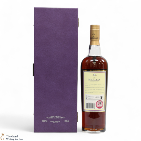 A highly desirable, limited-edition release from Macallan to commemorate the Golden Jubilee of Her Majesty Queen Elizabeth II (1952-2012). This is one of 2012 bottles. Drawn from its cask on the 8th of February 2012, by no coincidence the date of Her Majesty’s accession, this sherry cask-matured expression was bottled at 52% ABV. It is an instant classic and highly collectable.