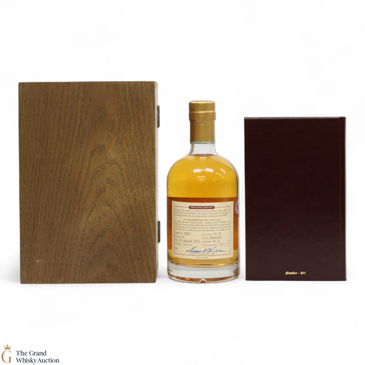 This beautifully presented 1984 Bruichladdich was matured in Bourbon Casks #14 & #15 and bottled 18 years later on the 21st of August 2002. This limited edition was produced in celebration of the reprint of the 'Practical Distiller', first published in 1718 and reproduced in 2002. This presentation includes a copy of the latest edition. This is one of only 500 bottles produced.