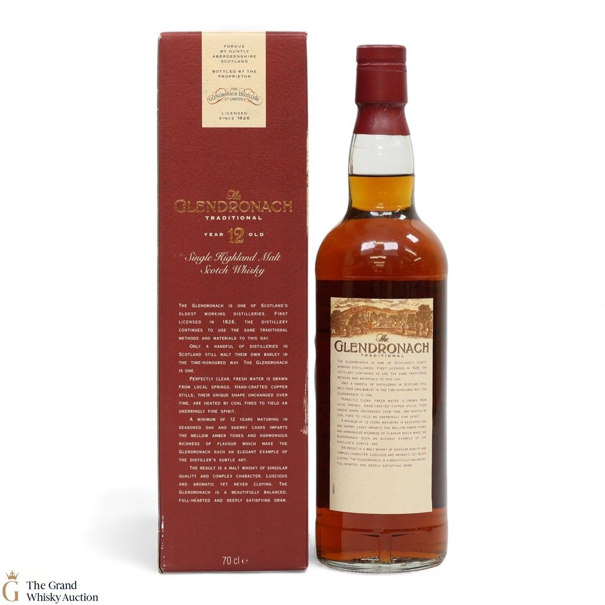 This is an old bottling of GlenDronach 12 Year Old Traditional single malt. It was matured in seasoned oak and Sherry casks. This is a bottle from the 1990s.