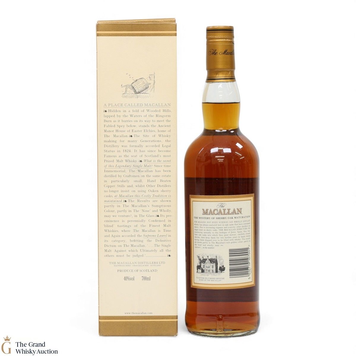 An old bottling of Macallan 10-year-old, which has been exclusively matured in sherry oak casks. Bottled in the early 2000s.