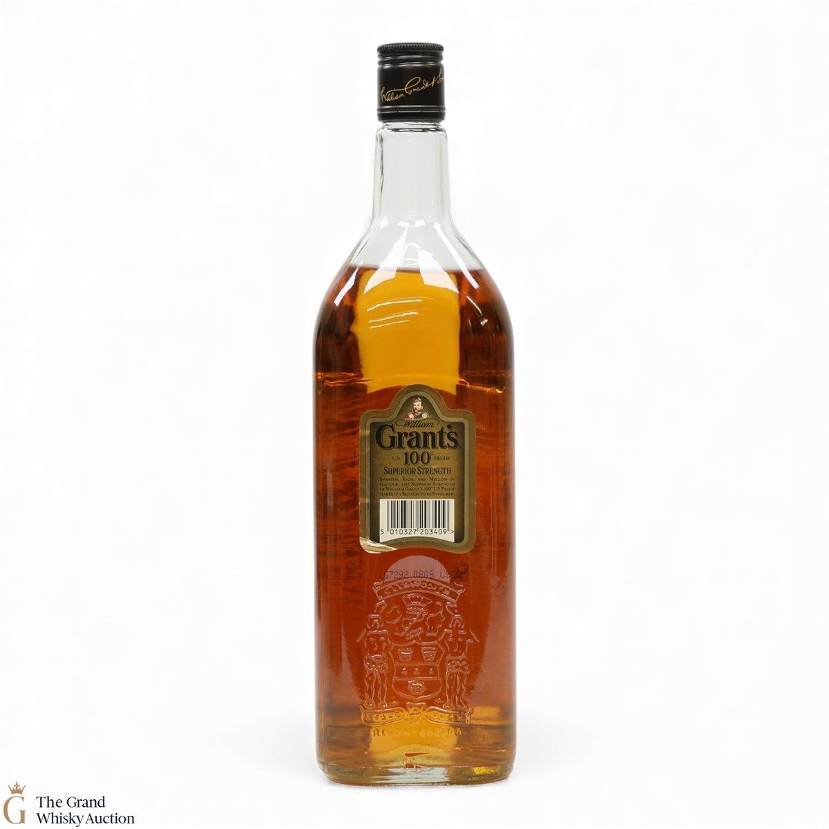 A 1L bottle of Grant's Superior Strength 100º Proof.