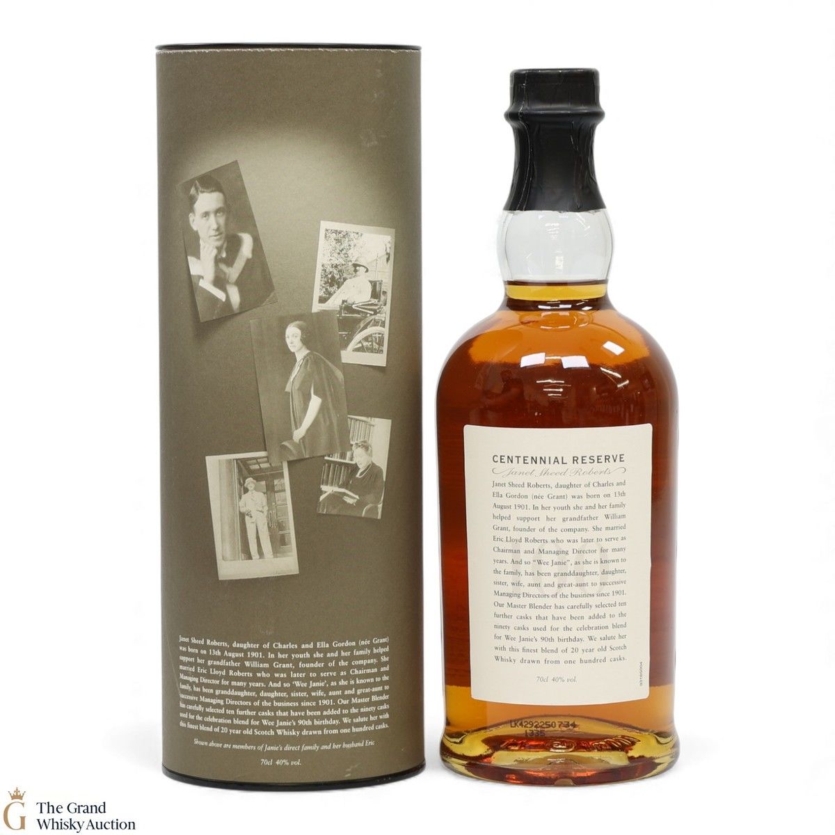 The bottling celebrates the 100th birthday of Janet Sheed Roberts on the thirteenth of August 2001. She was the granddaughter of William Grant of Glenfiddich.