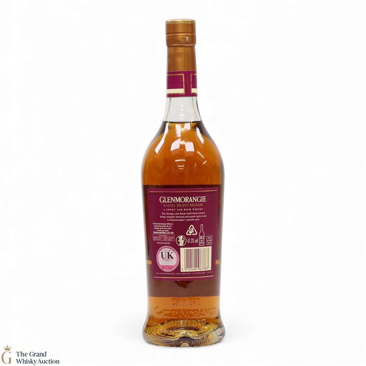 Due to the various ages of bottles and their seals, the condition of liquid is at the buyer's discretion and no claim can be lodged against failure/leakage in transit. Loss and breakage cover is available at 3% of the hammer price as standard. If the lot is not insured, no claim can be lodged against the courier or The Grand Whisky Auction for breakage or loss in transit.