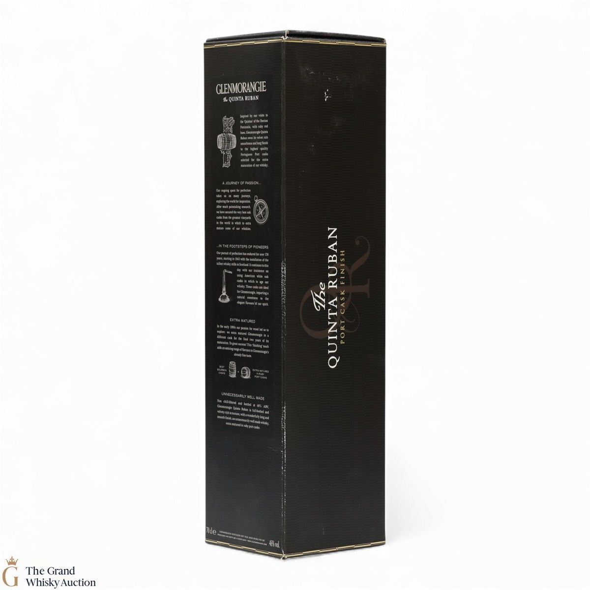 Glenmorangie Quinta Ruban is matured in bourbon casks before finishing in the finest Ruby Port casks from the "Quintas" or wine estates of Portugal. Ruban is Gaelic for Ruby.