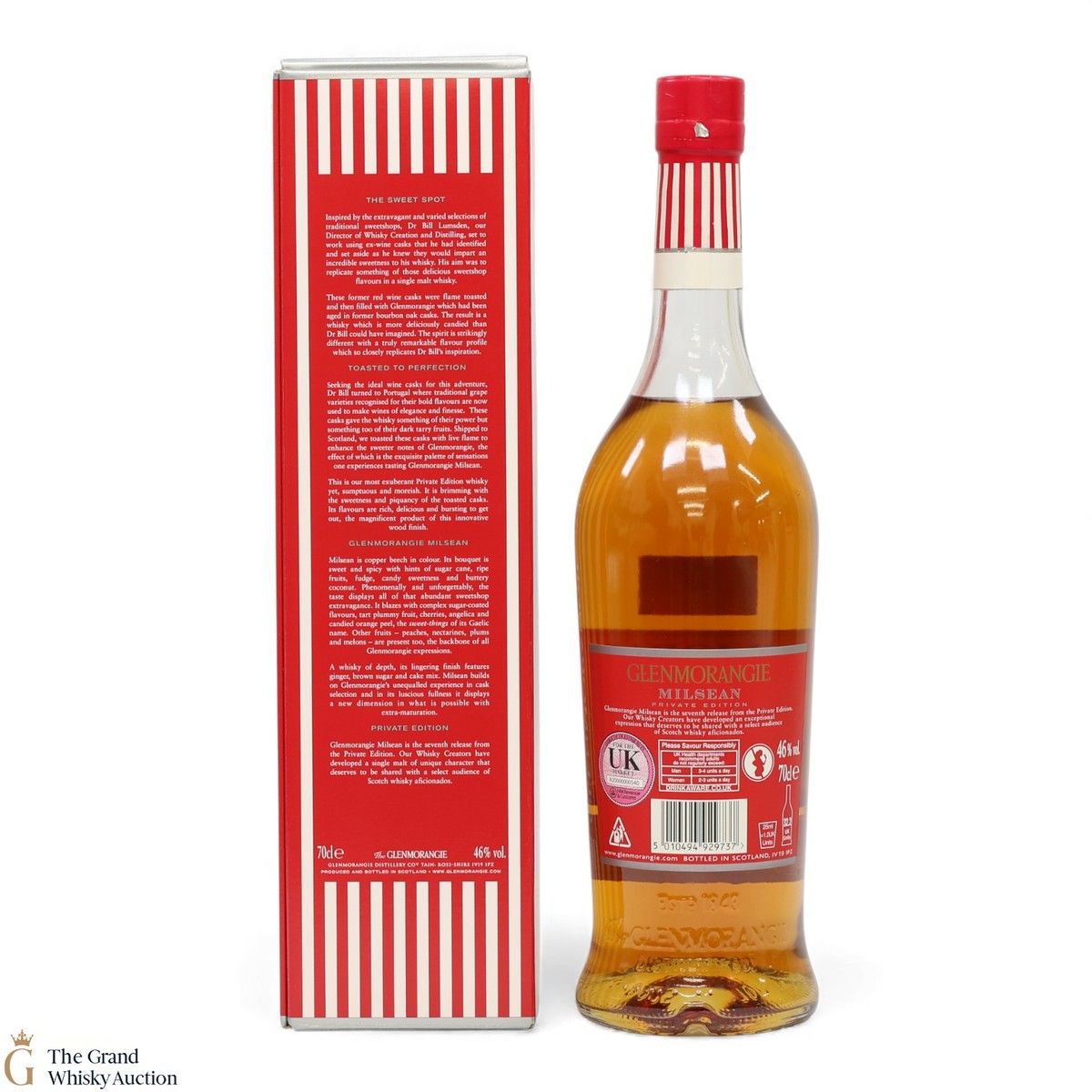 Milsean was the seventh release in Glenmorangie's Private Edition series. It was finished for two-and-a-half years in 154 toasted ex-Portuguese-red-wine barriques. This highland malt is sweet with notes of tropical fruit and lemon sherbet, backed up with some ginger spice.