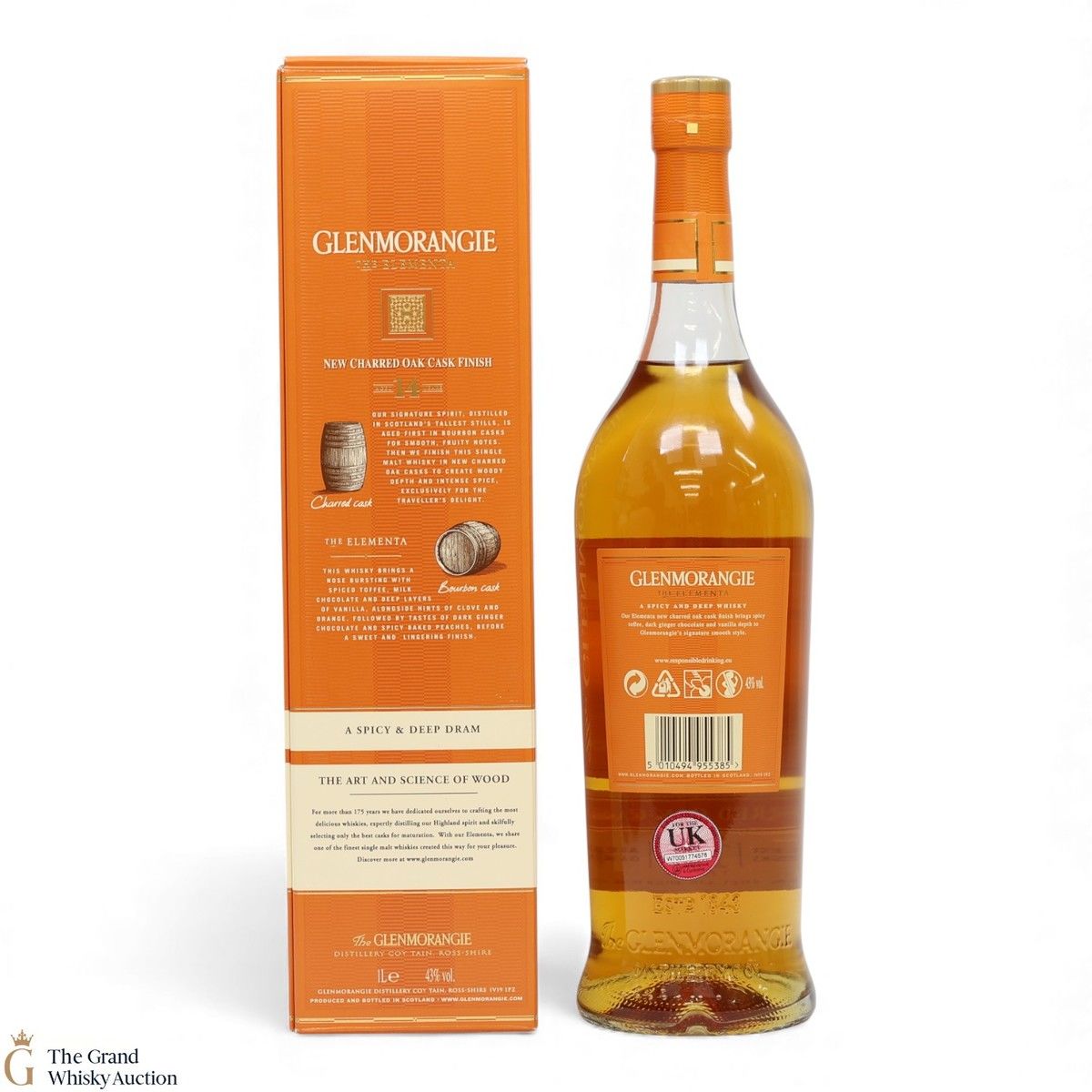 This spicy and deep Elementa celebrates Glenmornagie's skills in wood finishing, an art that brings new depths of flavour to their whisky. Matured initially in American oak bourbon casks to create smoothness and fruity notes and finished in charred oak casks, bringing forth a 14-year-old whisky of woody depth and intense spice. Available exclusively in travel retail.