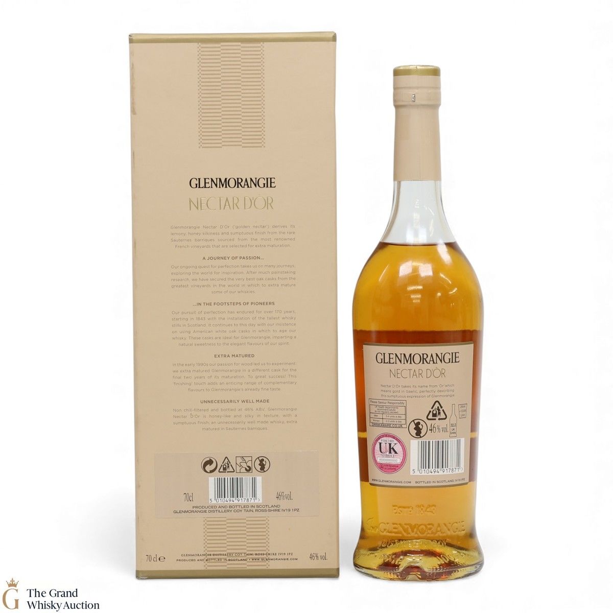 Due to the various ages of bottles and their seals, the condition of liquid is at the buyer's discretion and no claim can be lodged against failure/leakage in transit. Loss and breakage cover is available at 3% of the hammer price as standard. If the lot is not insured, no claim can be lodged against the courier or The Grand Whisky Auction for breakage or loss in transit.