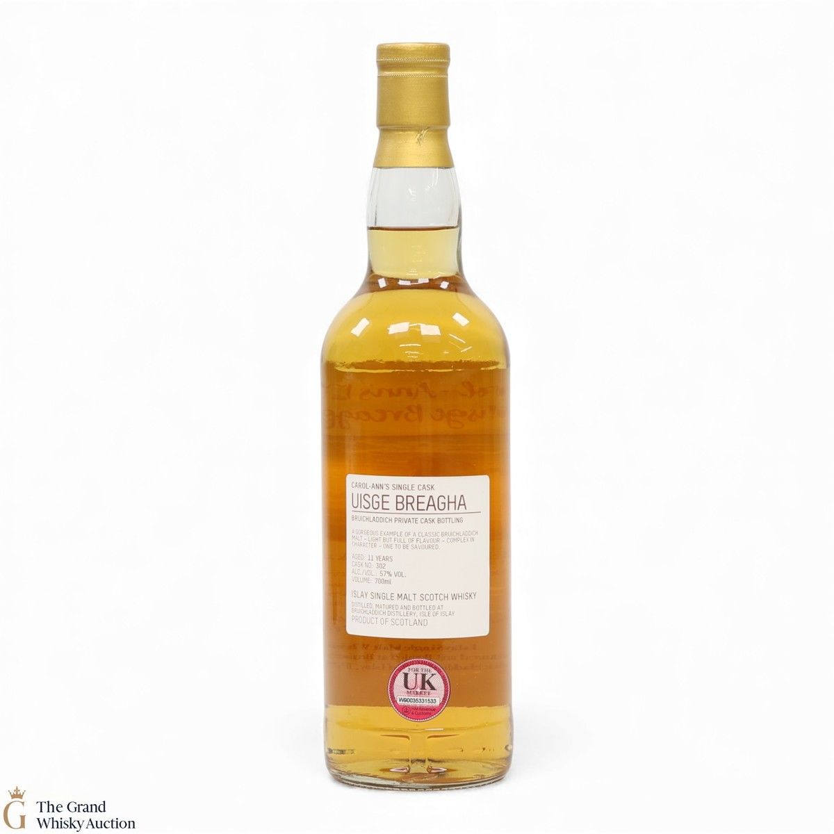 Due to the various ages of bottles and their seals, the condition of liquid is at the buyer's discretion and no claim can be lodged against failure/leakage in transit. Loss and breakage cover is available at 3% of the hammer price as standard. If the lot is not insured, no claim can be lodged against the courier or The Grand Whisky Auction for breakage or loss in transit.