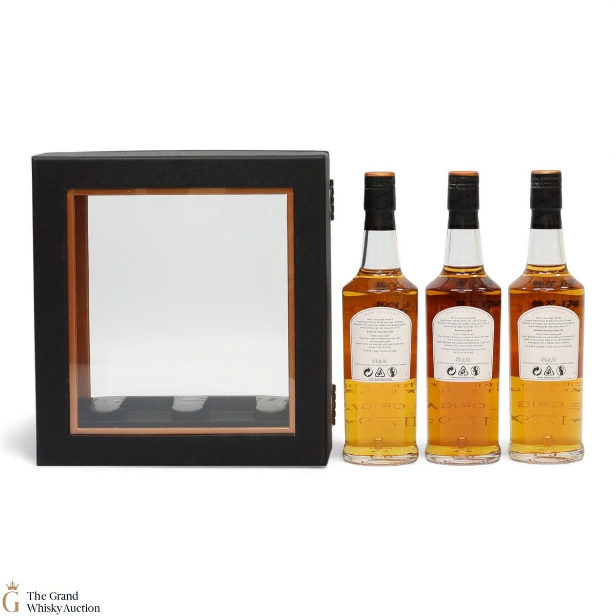 A chance to sample three of the wonders Bowmore offer. This Bowmore gift pack contains miniature bottles of the 12, 15 Mariner and 17-year-old expressions.