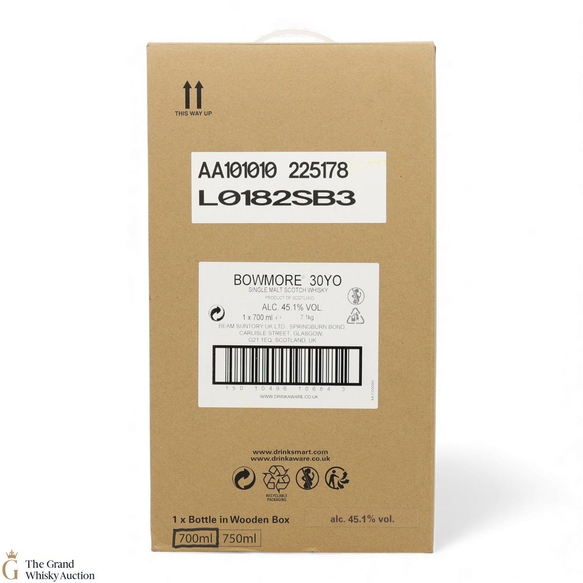 Due to the various ages of bottles and their seals, the condition of liquid is at the buyer's discretion and no claim can be lodged against failure/leakage in transit. Loss and breakage cover is available at 3% of the hammer price as standard. If the lot is not insured, no claim can be lodged against the courier or The Grand Whisky Auction for breakage or loss in transit.