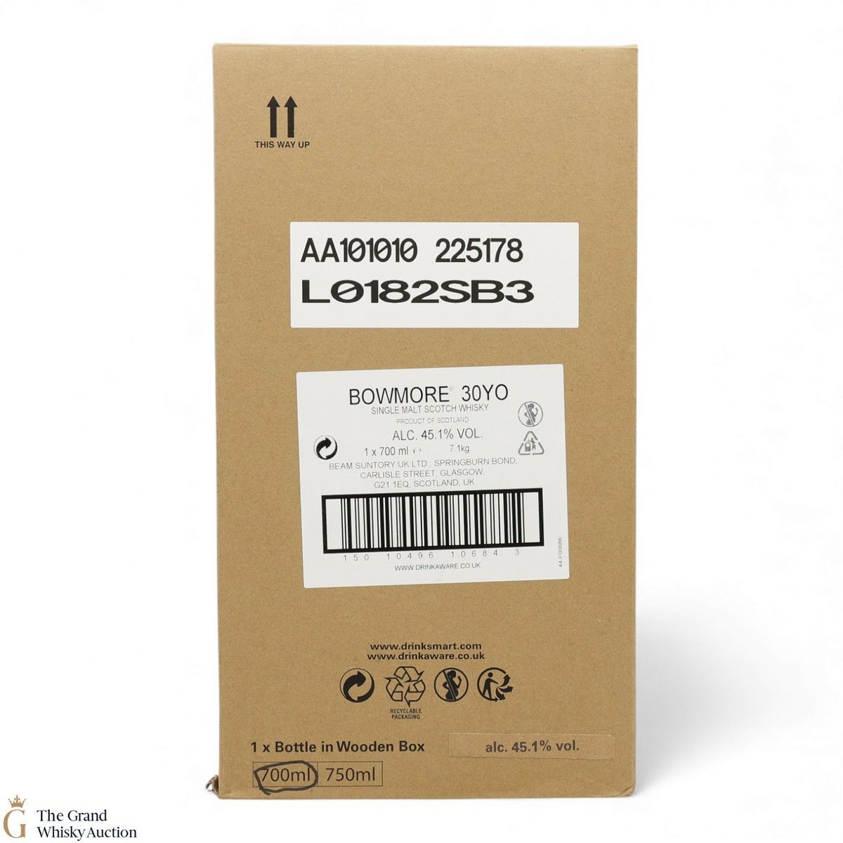 Due to the various ages of bottles and their seals, the condition of liquid is at the buyer's discretion and no claim can be lodged against failure/leakage in transit. Loss and breakage cover is available at 3% of the hammer price as standard. If the lot is not insured, no claim can be lodged against the courier or The Grand Whisky Auction for breakage or loss in transit.