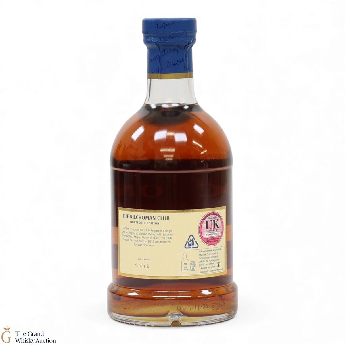 Due to the various ages of bottles and their seals, the condition of liquid is at the buyer's discretion and no claim can be lodged against failure/leakage in transit. Loss and breakage cover is available at 3% of the hammer price as standard. If the lot is not insured, no claim can be lodged against the courier or The Grand Whisky Auction for breakage or loss in transit.