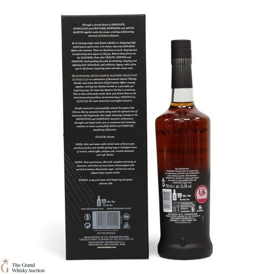 This is the 3rd edition of the Masters' Selection - a celebration of Bowmore's Master Whisky Blender and Aston Martin's Chief Creative Officer coming together, uniting two distinct worlds in a powerful, yet inspiring way. For these two Masters, the key is constancy. This ultimately unites them and drives them as the time-honoured guardians of maintaining a perpetual quest for the most immersive and joyful moments.