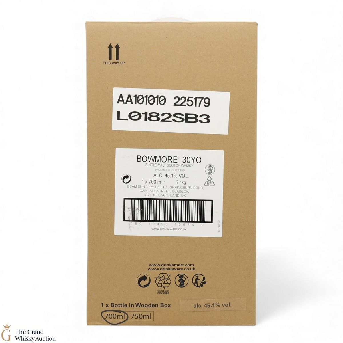 Due to the various ages of bottles and their seals, the condition of liquid is at the buyer's discretion and no claim can be lodged against failure/leakage in transit. Loss and breakage cover is available at 3% of the hammer price as standard. If the lot is not insured, no claim can be lodged against the courier or The Grand Whisky Auction for breakage or loss in transit.