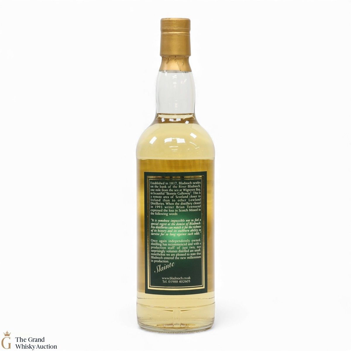 Due to the various ages of bottles and their seals, the condition of liquid is at the buyer's discretion and no claim can be lodged against failure/leakage in transit. Loss and breakage cover is available at 3% of the hammer price as standard. If the lot is not insured, no claim can be lodged against the courier or The Grand Whisky Auction for breakage or loss in transit.