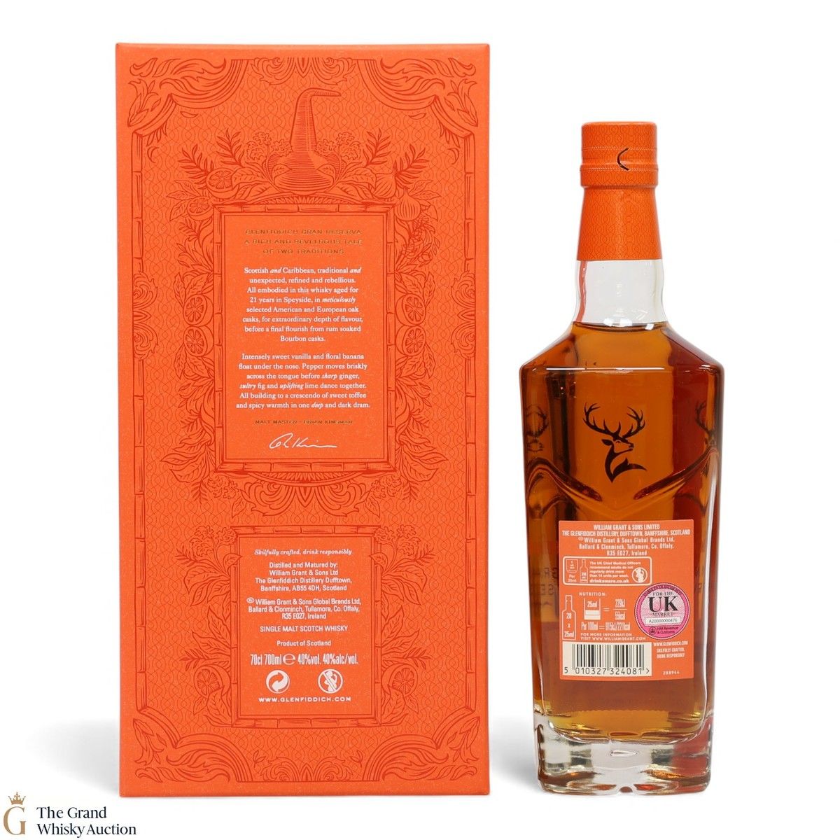 The Glenfiddich Gran Reserva has matured and mellowed in American Oak Casks for 21 years before being finished in previously used Caribbean Rum casks for 4 months.