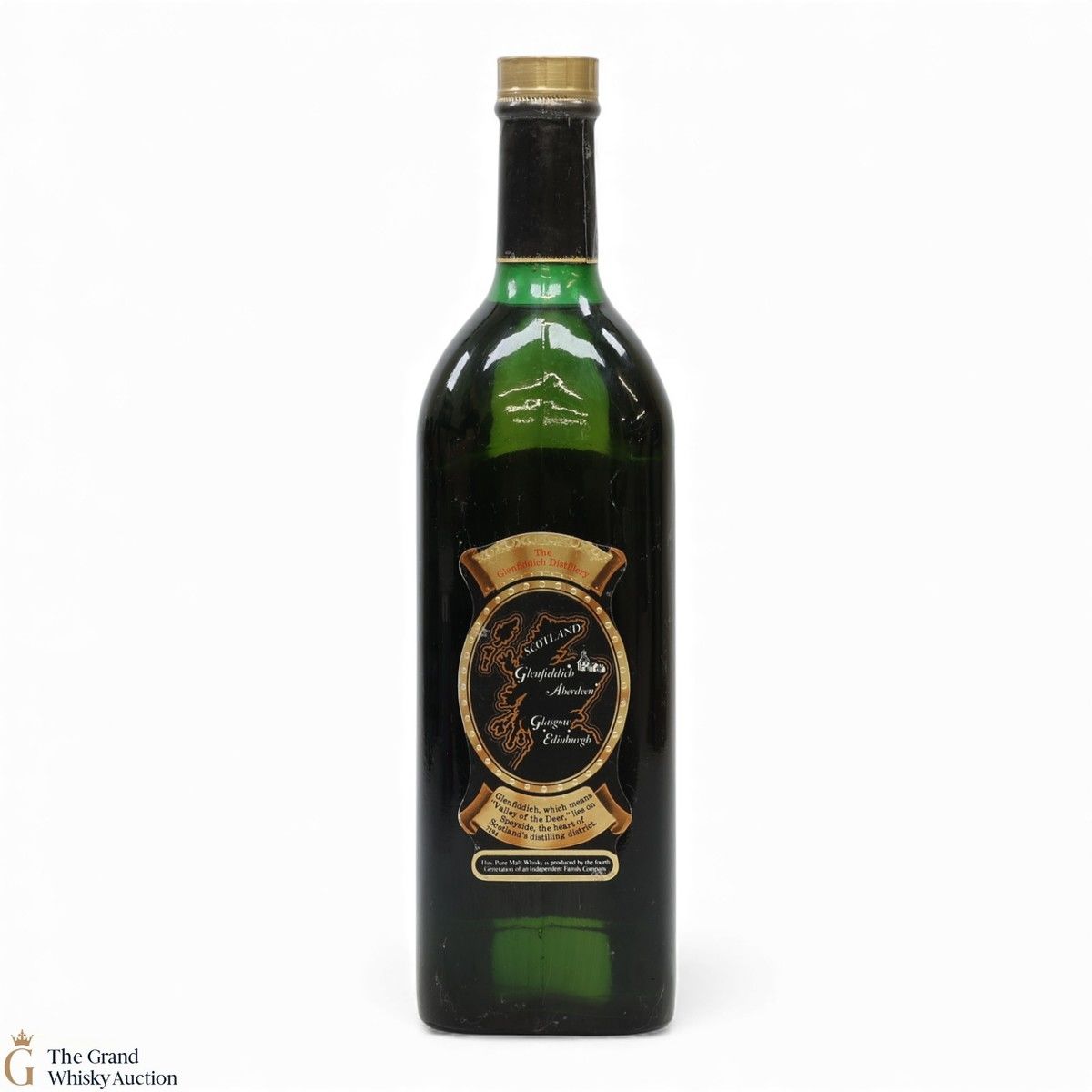 A now rare 26 2/3 Fl Ozs bottling of 1970s Glenfiddich 8 Year Old Pure Malt.