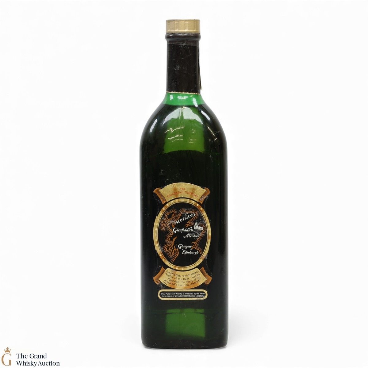 A now rare 26 2/3 Fl Ozs bottling of 1970s Glenfiddich 8 Year Old Pure Malt.