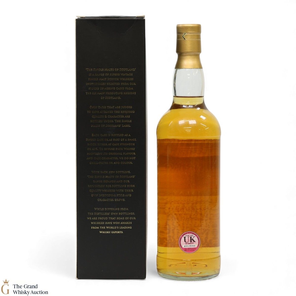 Due to the various ages of bottles and their seals, the condition of liquid is at the buyer's discretion and no claim can be lodged against failure/leakage in transit. Loss and breakage cover is available at 3% of the hammer price as standard. If the lot is not insured, no claim can be lodged against the courier or The Grand Whisky Auction for breakage or loss in transit.