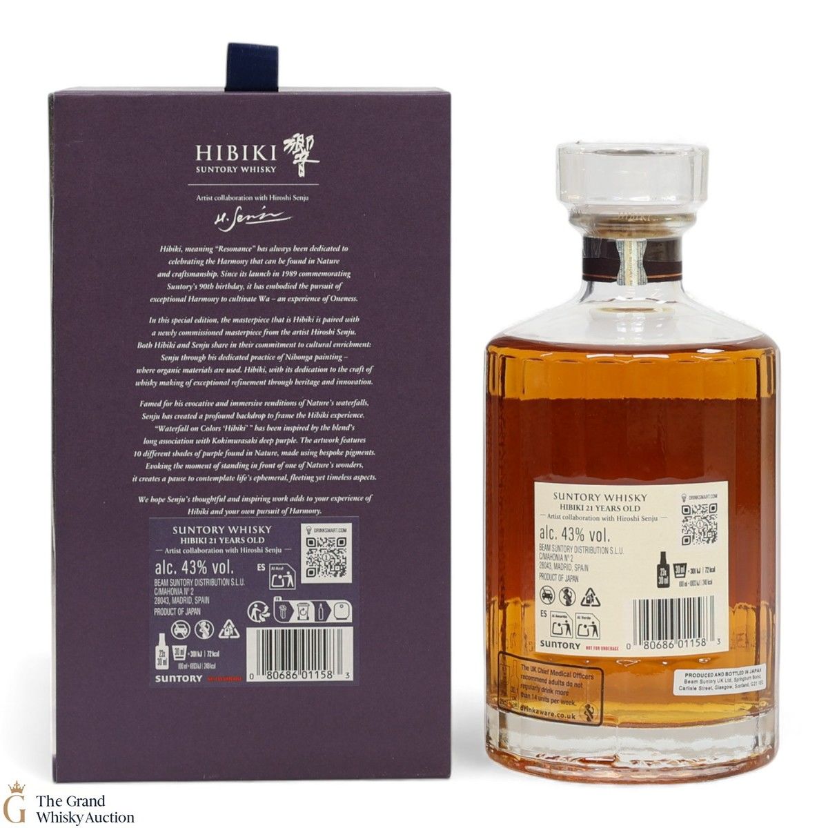 A work of collaboration between Japanese whisky artistry and visual art, this edition pairs Hibiki’s renowned 21-year-old blended whisky with a specially commissioned piece by painter Hiroshi Senju (celebrated for his mastery of Nihonga painting, a traditional art form that uses only natural, organic materials) titled “Waterfall on Colours ‘Hibiki’”. The artwork uses ten shades of purple inspired by the Kokimurasaki gradient associated with Hibiki’s spirit of harmony.