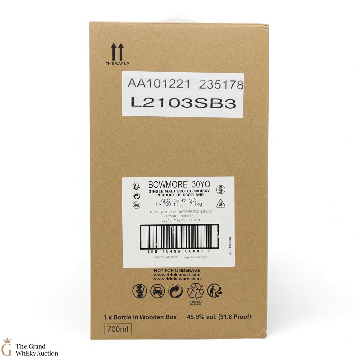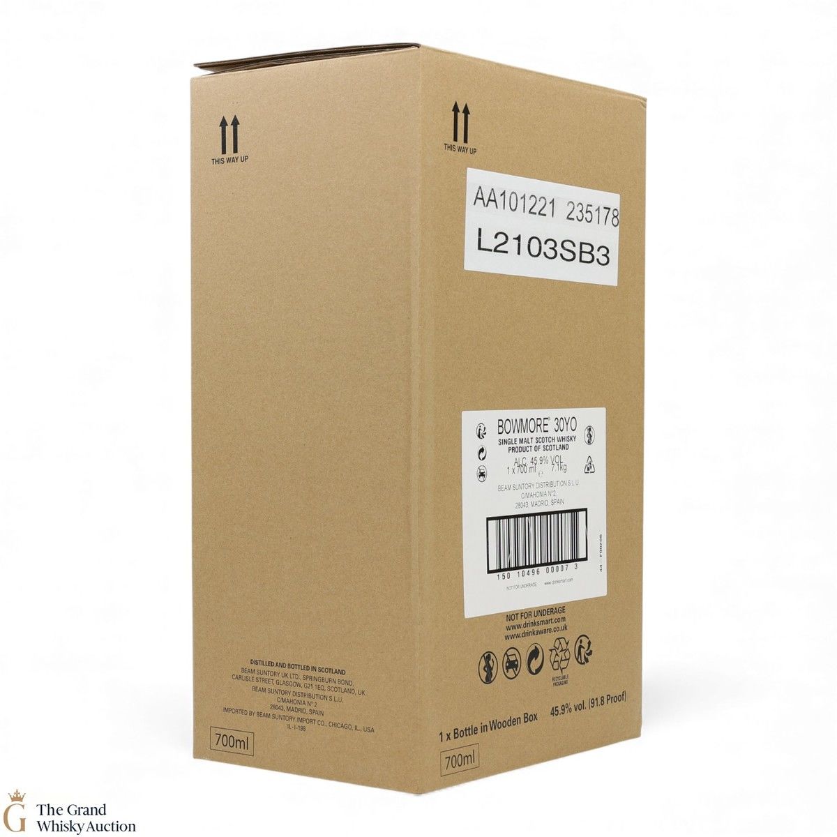 Due to the various ages of bottles and their seals, the condition of liquid is at the buyer's discretion and no claim can be lodged against failure/leakage in transit. Loss and breakage cover is available at 3% of the hammer price as standard. If the lot is not insured, no claim can be lodged against the courier or The Grand Whisky Auction for breakage or loss in transit.
