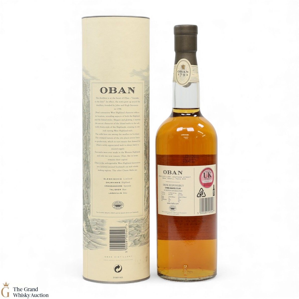 This is the Western Highland representative in Diageo's 'Classic Malt' series. Oban 14-year-old single malt is a rich and fruity malt, with notes of heather and smoke. It is an award-winning single malt, distilled close to the sea.