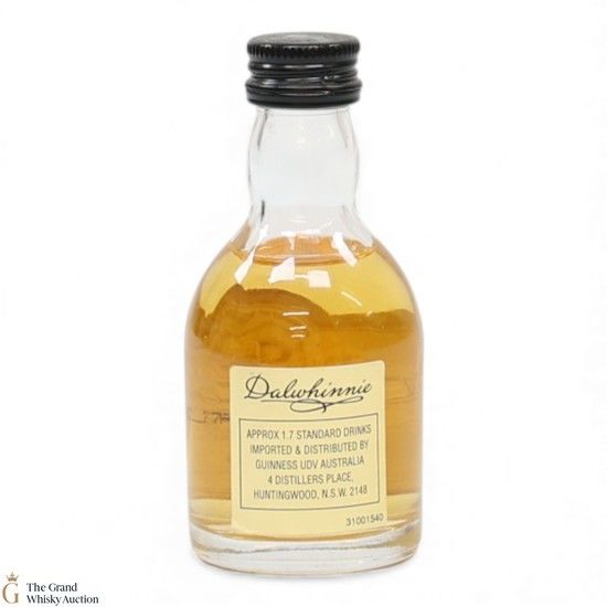 A miniature bottle of Dalwhinnie 15-Year-Old Pure Highland Single Malt Scotch Whisky.