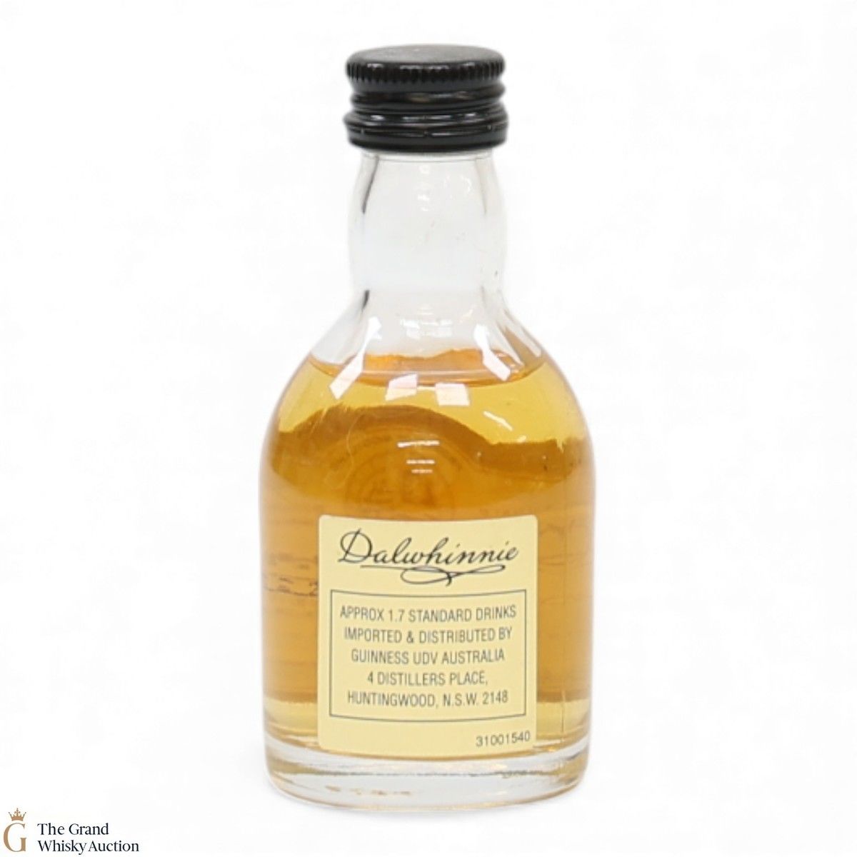 A miniature bottle of Dalwhinnie 15-Year-Old Pure Highland Single Malt Scotch Whisky.