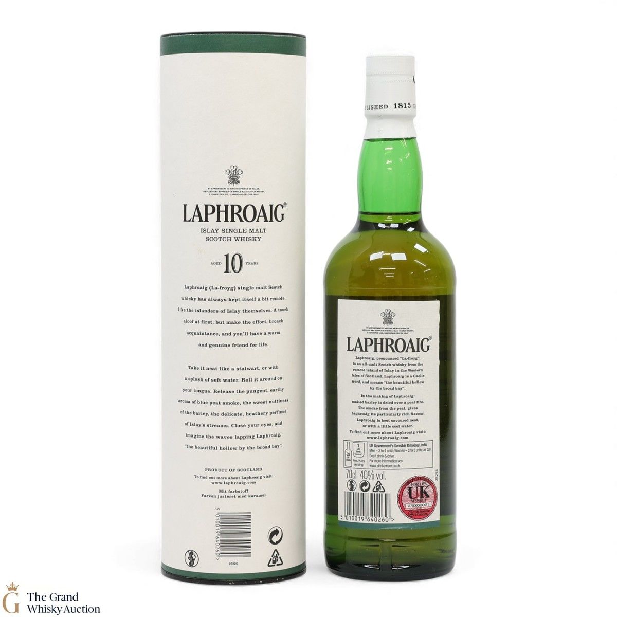 A 70cl of the medicinal 10 year old from Islay's bestselling distillery, Laphroaig. In making Laphroaig, malted barley is dried over a peat fire. The smoke from this peat, found only on Islay, gives Laphroaig its particularly rich flavour.