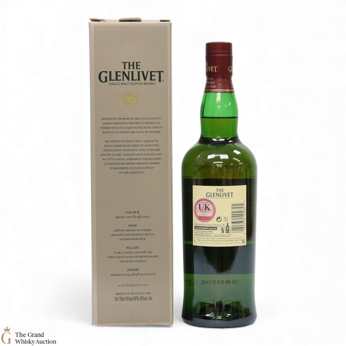 Due to the various ages of bottles and their seals, the condition of liquid is at the buyer's discretion and no claim can be lodged against failure/leakage in transit. Loss and breakage cover is available at 3% of the hammer price as standard. If the lot is not insured, no claim can be lodged against the courier or The Grand Whisky Auction for breakage or loss in transit.