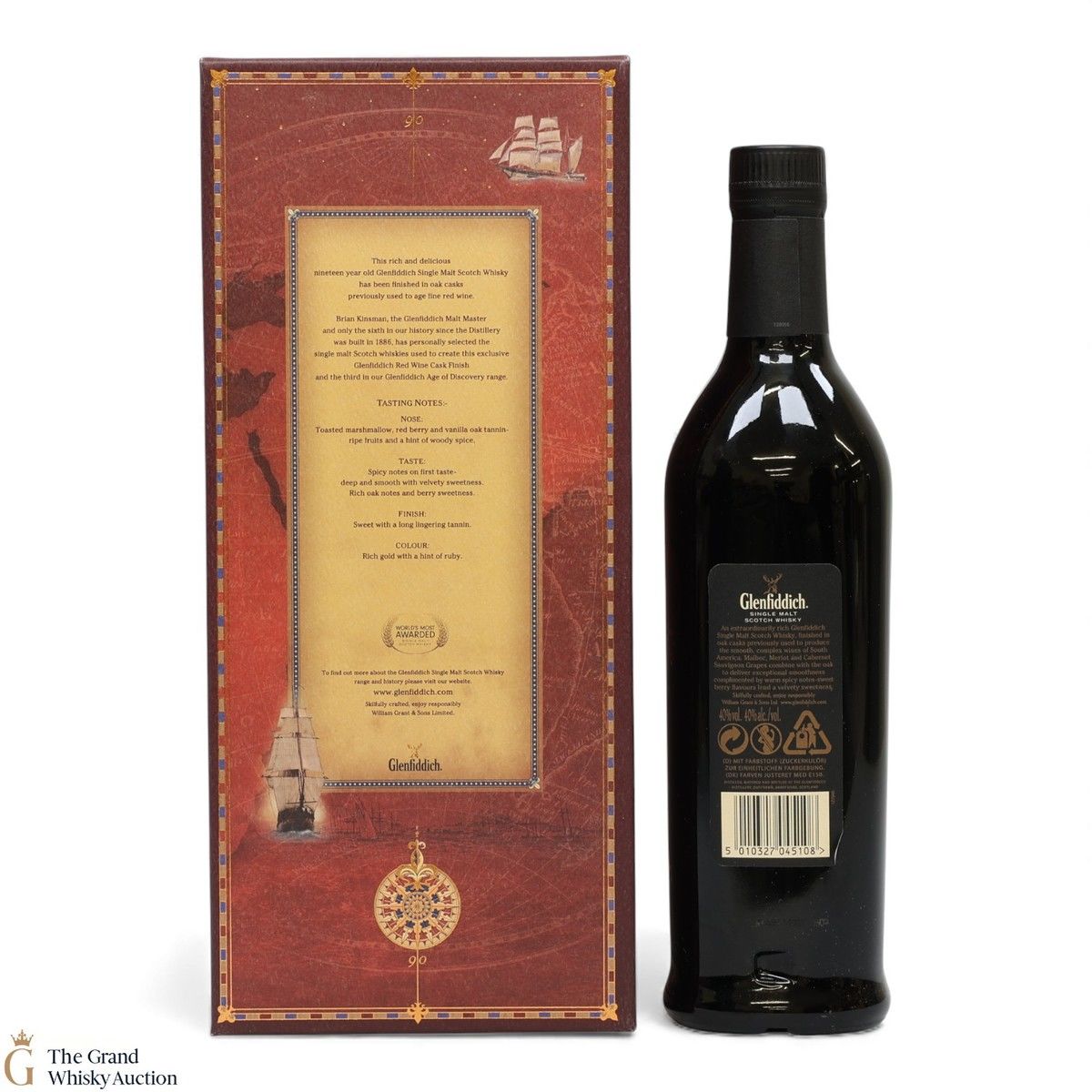 This is the third release in the Glenfiddich's Travel Retail Age of Discovery series. This is a 19 year old single malt Scotch whisky has been finished in South American red wine casks It was created to commemorate the 1831 voyage of the HMS Beagle, which travelled to South America so Charles Darwin could collect fossils, helping him with his theory of evolution. It is a rich, spicy and warm whisky.