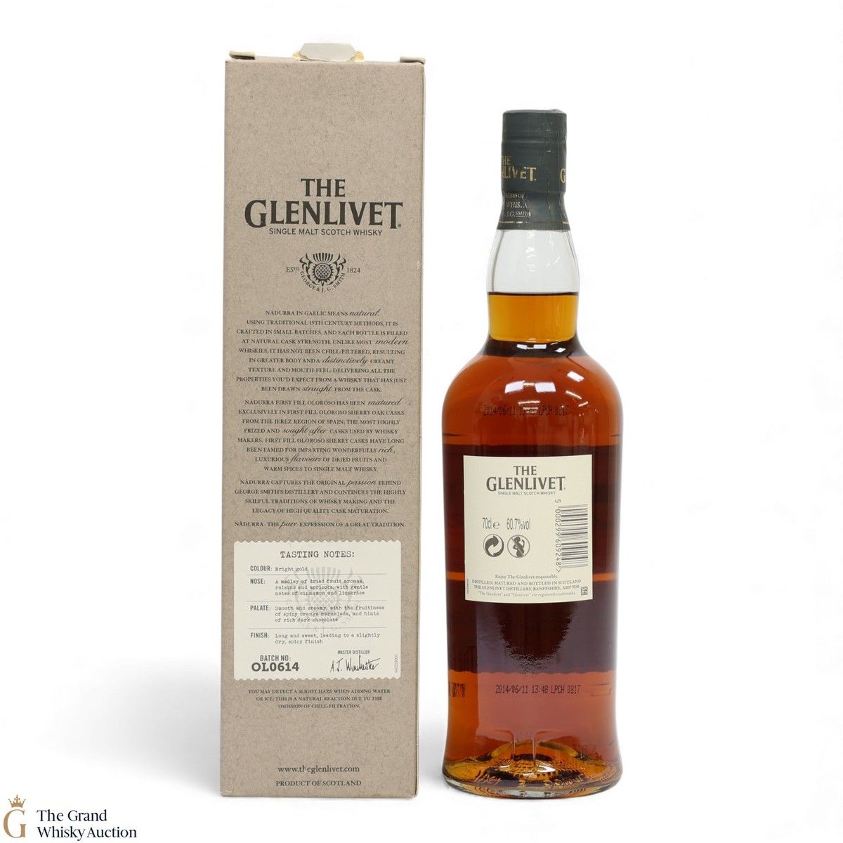 Released as part of the Glenlivet Nadurra range, this single malt was fully matured in Oloroso casks. Every release in this series was bottled and released in small batches - this is batch OL0614 was bottled in 06/14.