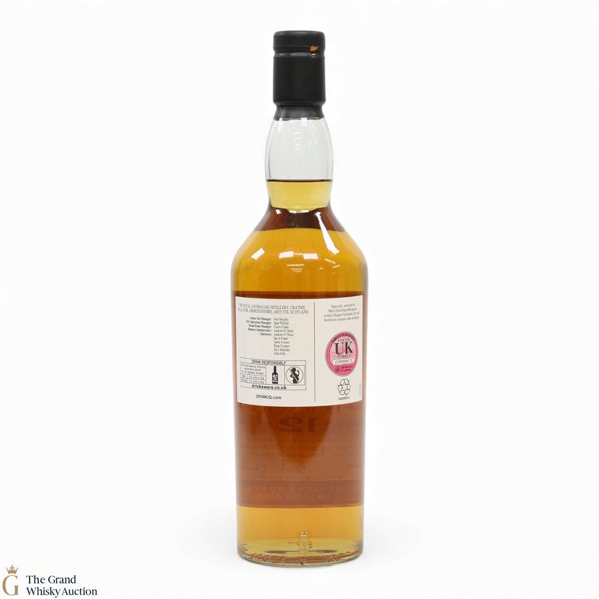 Due to the various ages of bottles and their seals, the condition of liquid is at the buyer's discretion and no claim can be lodged against failure/leakage in transit. Loss and breakage cover is available at 3% of the hammer price as standard. If the lot is not insured, no claim can be lodged against the courier or The Grand Whisky Auction for breakage or loss in transit.