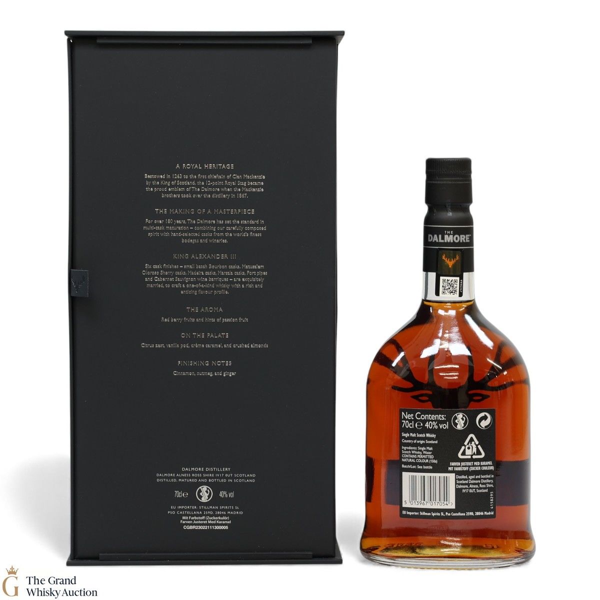 To make The Dalmore King Alexander III, Master Distiller Richard Paterson specially selected 6 casks of differently aged Dalmore malts matured in wine, Madeira, sherry, marsala, Kentucky bourbon and port casks. A remarkable feat of blending crafted to honour the act of saving Scotland's King in 1263. It is a rich, fruity Highland single malt.