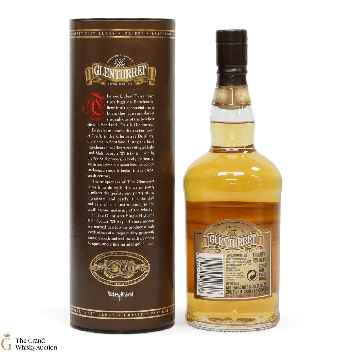 Due to the various ages of bottles and their seals, the condition of liquid is at the buyer's discretion and no claim can be lodged against failure/leakage in transit. Loss and breakage cover is available at 3% of the hammer price as standard. If the lot is not insured, no claim can be lodged against the courier or The Grand Whisky Auction for breakage or loss in transit.