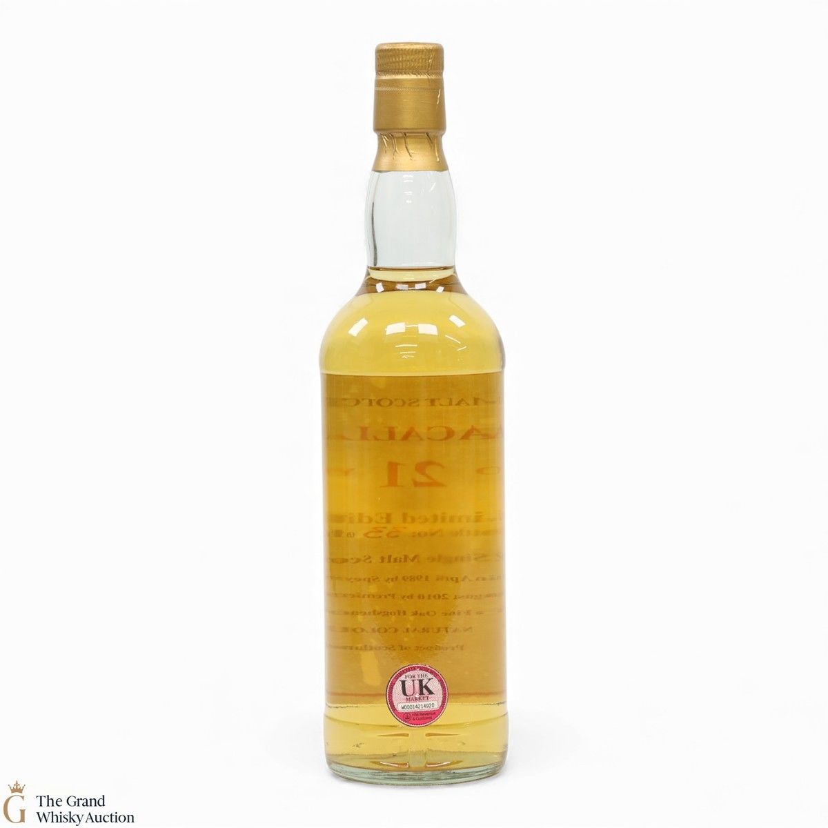 Due to the various ages of bottles and their seals, the condition of liquid is at the buyer's discretion and no claim can be lodged against failure/leakage in transit. Loss and breakage cover is available at 3% of the hammer price as standard. If the lot is not insured, no claim can be lodged against the courier or The Grand Whisky Auction for breakage or loss in transit.