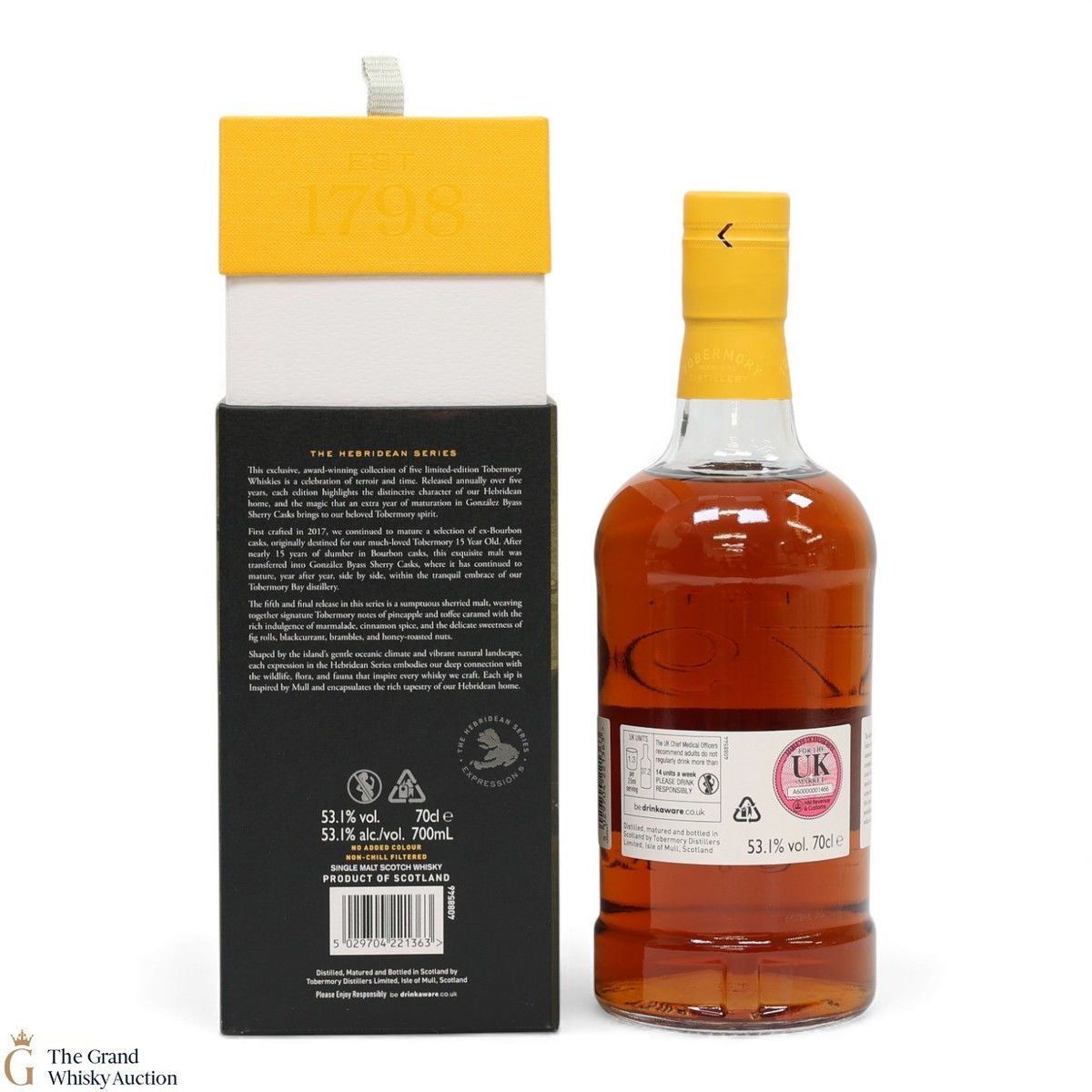 This Tobermory was given a finishing period in Gonzales Byas's Oloroso sherry casks after initial maturation in refill hogsheads. This single malt began its maturation in bourbon casks for 15 years before spending an additional 12 years in oloroso sherry casks.