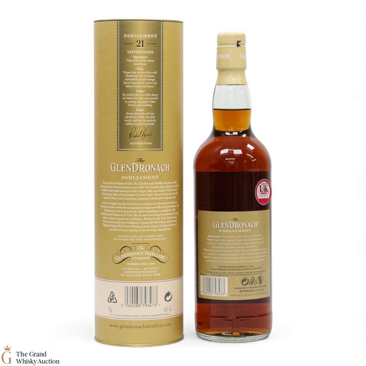 Due to the various ages of bottles and their seals, the condition of liquid is at the buyer's discretion and no claim can be lodged against failure/leakage in transit. Loss and breakage cover is available at 3% of the hammer price as standard. If the lot is not insured, no claim can be lodged against the courier or The Grand Whisky Auction for breakage or loss in transit.