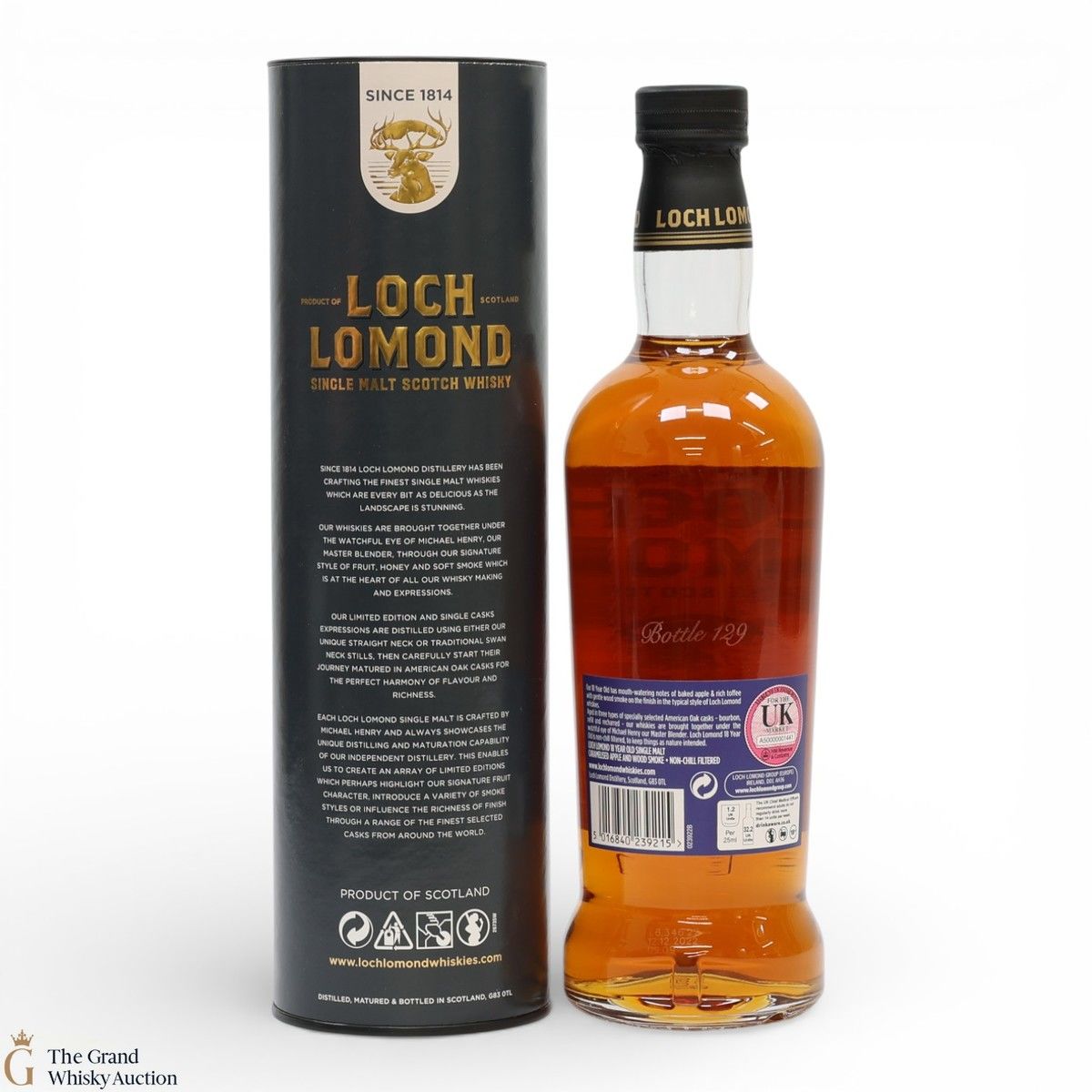 The Loch Lomond 18-year-old single malt is distilled in the Loch Lomond unique stills and matured in the finest oak casks chosen by Tommy Wallace, master cooper at the time.